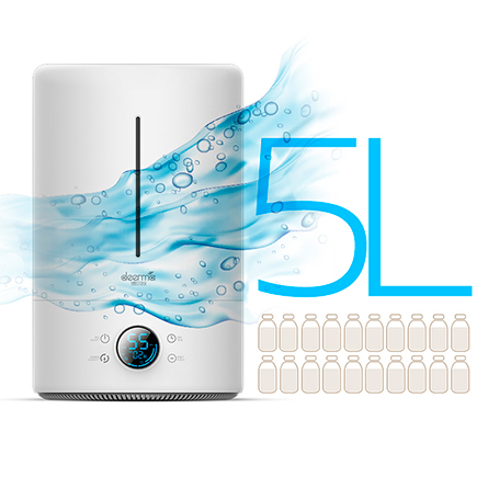 Объем резервуара 5 литров рассчитан на длительную работу. Включайте увлажнитель воздуха во время сна для оптимального увлажнения кожи и насыщения влагой. Тихая работа не помешает спокойному сну.